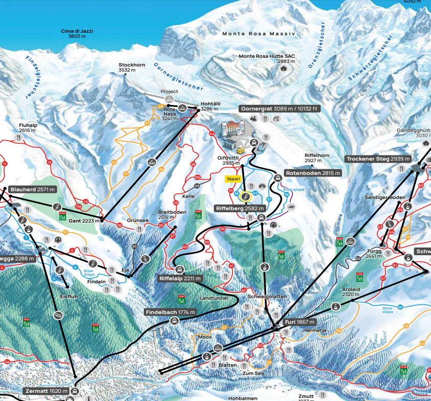 Это особенно важно для тех, кто оказывается в Церматте в пик сезона, а также для любителей фрирайда. Очереди к старому Gifthittli занимали много времени, место, где расположена нижняя станция этой креселки, было своего рода "бутылочным горлышком". Этот подъемник было тяжело избежать по пути из Риффельберга в Суннеггу или при выборе других маршрутов, например, на Hohtälli. Но это уже в прошлом.